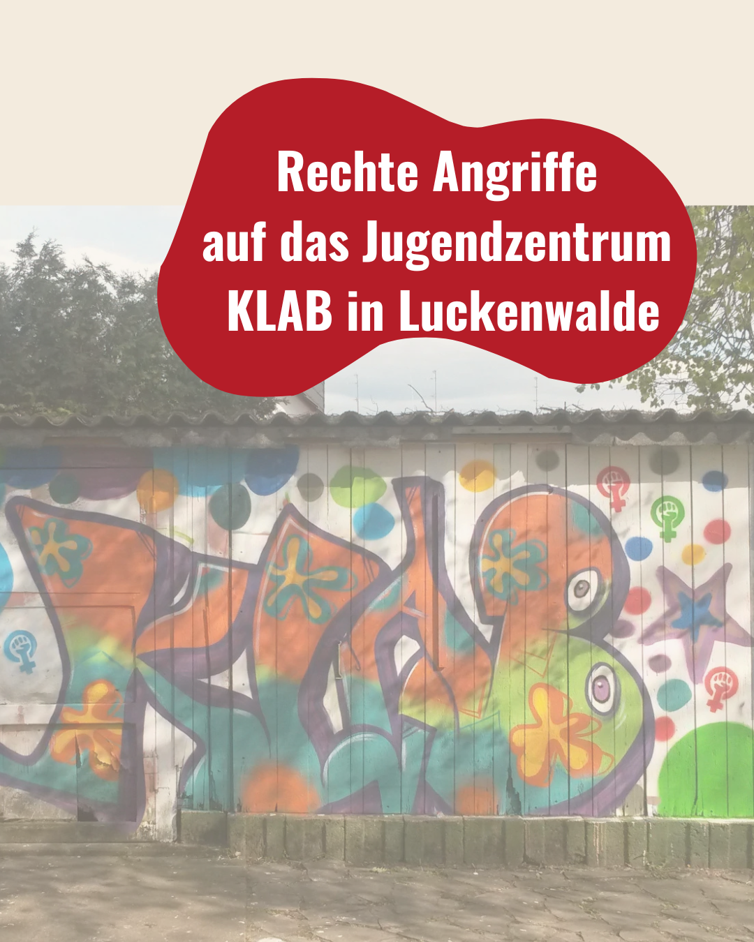 Pressemitteilung: Die Beratungsstelle Opferperspektive e.V. und die Falken Brandenburg machen rechtsmotivierte Angriffe auf das Jugendzentrum KLAB in Luckenwalde öffentlich. Das…