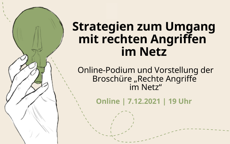 Zur Vorstellung der Broschüre möchten wir Sie am Dienstag, 7. Dezember 2021 um 19.00 Uhr zu unserem Online-Podium “Strategien zum Umgang mit rechten Angriffen im Netz” einladen.