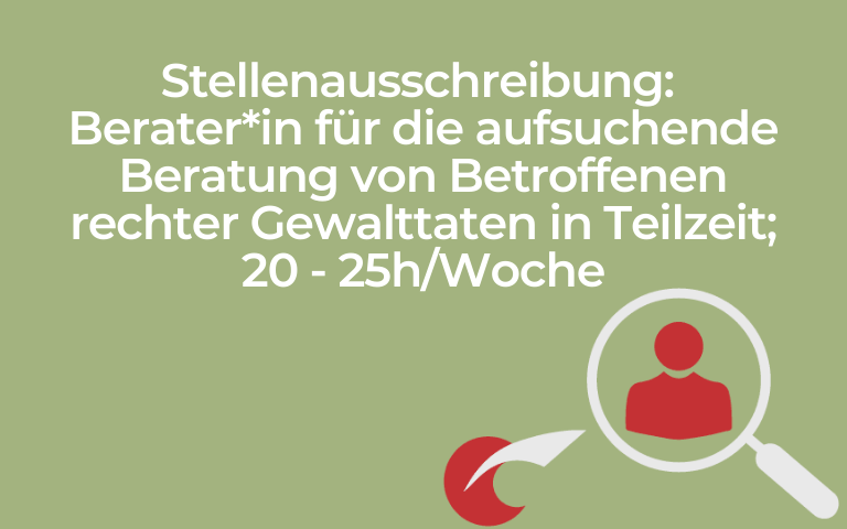 Stellenausschreibung aufsuchende Beratung von Betroffenen rechter Gewalttaten in Teilzeit; 20-25h/Woche