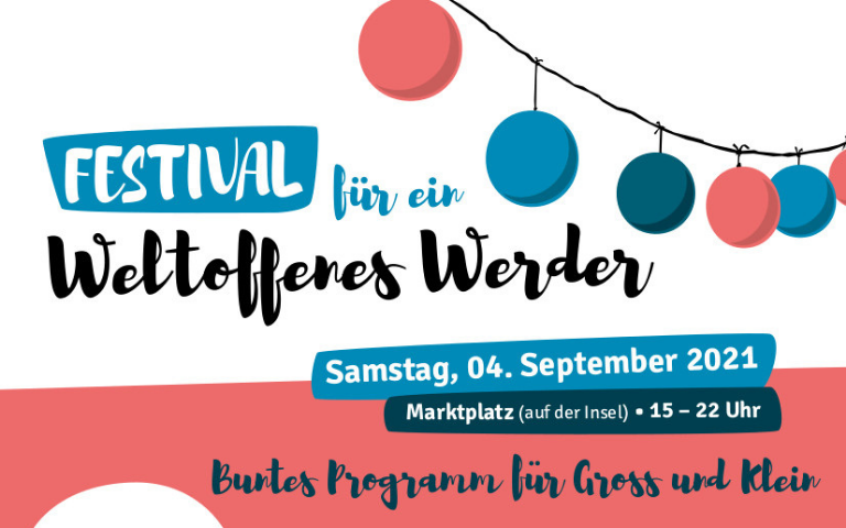 Vom 28. August bis 4. September findet in diesem Jahr zum fünften mal die Aktionswoche Weltoffenes Werder statt. Mit Kino, Theater, Strorytelling, Workshops und einem großen Abschlussfestival soll gegen Rassismus und Ausgrenzung und für ein weltoffenes und vielfältiges Werder ein Zeichen gesetzt werden.