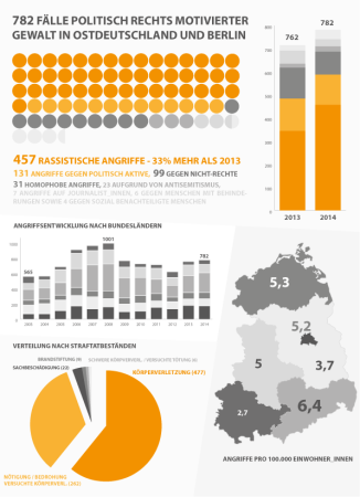 Unabhängige Opferberatungsprojekte veröffentlichen gemeinsame Statistik für 2014 Anstieg rassistischer Gewalt ist Besorgnis erregend Die Zahl politisch rechts, rassistisch und antisemitisch…